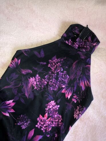 Rəng/naxış: Qara fon üzərində bənövşəyi və çəhrayı çalarlarında floral print