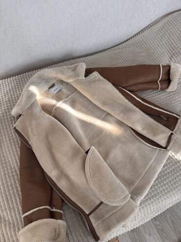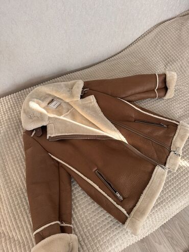 ZARA qadin üçün qışlıq “aviator” üslublu dərili kürk gödəkçə. - Rəng: tünd qəhvəyi (xarici hissə), krem rəngli süni kürk astar - Material: dərimsi üst qat, içi və yaxası qalın sherpa/kürk astarlı...