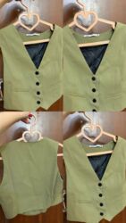 - Ölçü/uyğunluq: qısa jilet forması, ofis və casual kombinlər üçün uyğundur