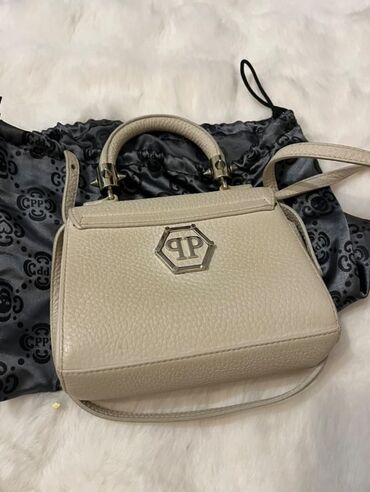 Digər brendPhilipp Plein Zərif krem rəngli dəri əl çantası, həm çiyində, həm də əldə daşımaq üçün nəzərdə tutulub. Üzərindəki kəllə formalı bəzək daşlarla bəzədilmişdir. Çanta, gündəlik istifadə və ya xüsusi tədbirlər üçün uyğundur.