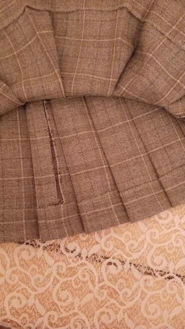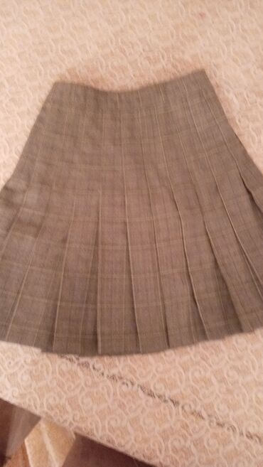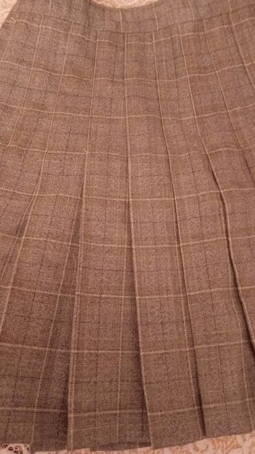 Qəhvəyi rəngli, plise kəsimli qısa ətək. - Dizayn: Klassik