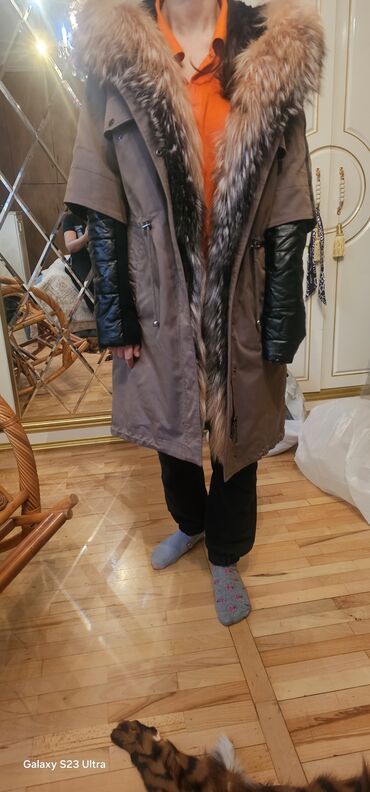 - Ön hissədə və kapüşonda geniş, təbii kürk bəzəyi