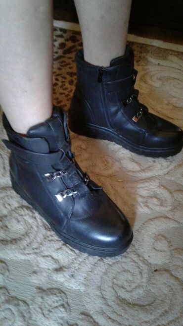 Qadın uzun temiz dəri çəkmə baha alınıb - Rəng: tünd qəhvəyi - Material: yumşaq dəridən, dekorativ iri tikişlər - Dizayn: dizə yaxın hündürlük, yan tərəfdə metal tokalı dekorativ kəmər - Daban: qa...
