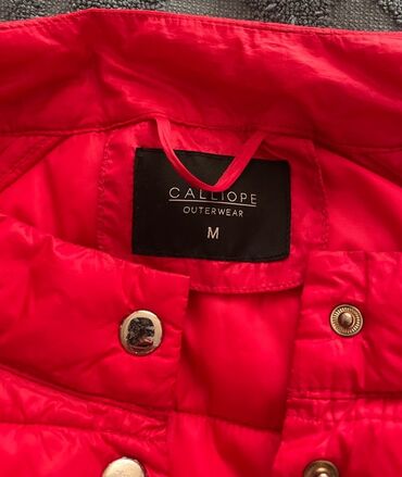 Rəng: parlaq qırmızı. Markanın iç etiketində “Calliope Outerwear, M” qeyd olunub.