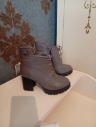 - Model 1: Parlaq qırmızı, qalın hündur dabanlı (təxminən 10–11 sm), ön hissədə platformalı, yan hissədə metal dekorativ toka və fermuar. Qış-payız üçün rahat qalın altlıqla.