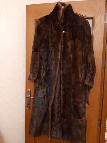 Qadın kürkü – tünd qəhvəyi/qaraya yaxın rəng, uzun modellidir. Xüsusiyyətlər: - Klassik düz kəsim, dizdən aşağı uzunluq - Yumşaq, sıx tüklü parlaq faktura - Geniş, qatlana bilən yaxalıq - Uzun qol...