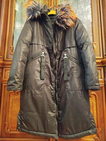 Qadınlar üçün qış paltosu – qara rəngdə, dizdən aşağı uzunluqda, oversize rahat kəsim. Xüsusiyyətlər: - İsti saxlayan qalın dolğu - Asimmetrik ön fermer bağlama (metallik, iri dişli) - Yüksək boğa...