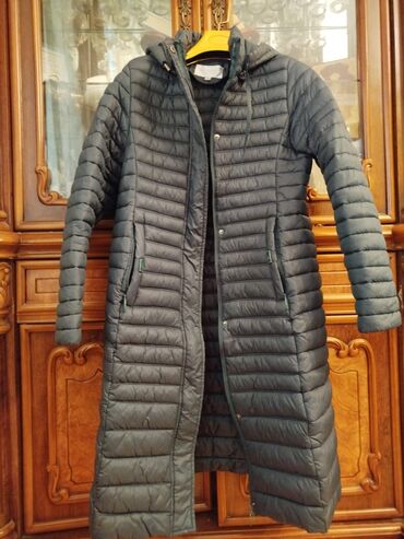 - Füruzəyi,yaşıl tonlarda, quilted (şaquli-üfüqi tikişli) uzun şişmə palto