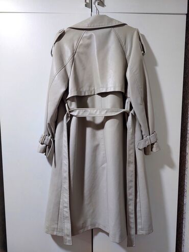 - Model: klassik trenç – enli döşəklikli yaxa, ön klapanlar, arxada fleyta (storm flap)