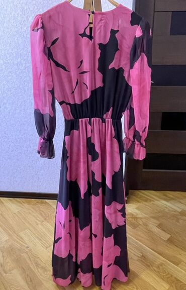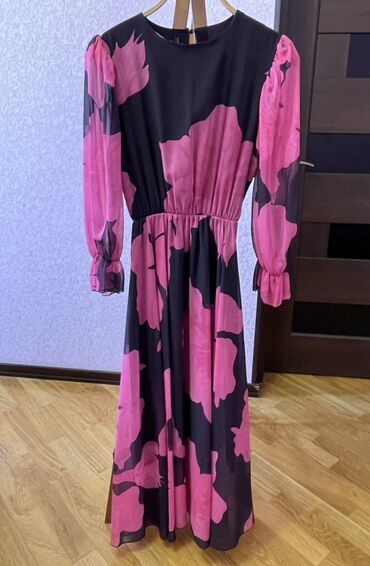 - Model: V-yaxa, ön hissədə büzgülü/volan detallı - Material: yüngül, şəffaf şifon; daxildə qara atlas astar - Uzunluq: maxi -Ölçü: M razmer.Lakin S və L ölçülərə də uyğundur - Qol: uzun, şəf...