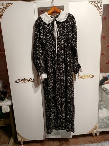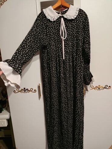 2) Qara rəngli, ağ xırda çiçək naxışlı uzun don
