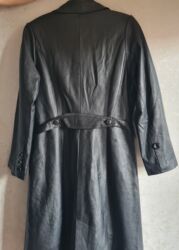 Zərif siluet yaradan, gündəlik və zərif kombinlər üçün uyğun, qara rəngli uzun dəri üst geyim. Minimalist görünüş, keyfiyyətli tikiş xətləri və bel vurğusu ilə fərqlənir.