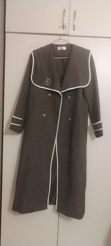 Palto çox az geyilib, keyfiyyetlidir - Rəng: açıq bej/boz ton - Ölçü: 50 (etiketdə) - Model: Klassik düz kəsim, dizaltı uzunluq - Yaxa: düz, klassik - Bağlanma: gizli düymələr və üst hissədə bəzək ...