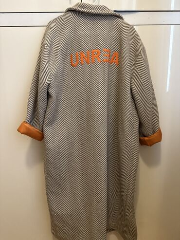 - Model: dizdən uzun, oversize kəsim, ikiqat düyməli ön hissə