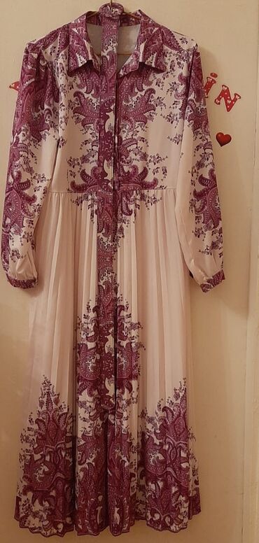 Zərif və rahat uzun libas - Model: Uzun, axıcı kəsim, beldən kəmərli - Rəng/Naxış: Ağ fon üzərində xırda qara xallı (polka-dot) - Material hissi: Yumşaq, yüngül və parıltılı toxuma - Yaxa: V forma...
