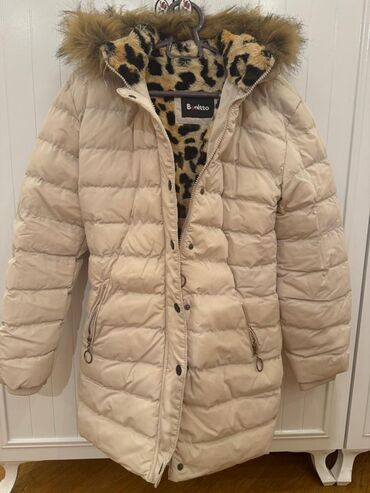 Qadın/yeniyetmə üçün qışlıq pufik palto -Olcu S - Rəng: xaki (zeytun yaşılı) – iç astarı parlaq qızılı/şıx çəhrayı tonlarda kontrast - Uzunluq: dizə yaxın, geniş kəsim - Kapüşon: iri, isti, eyni ko...