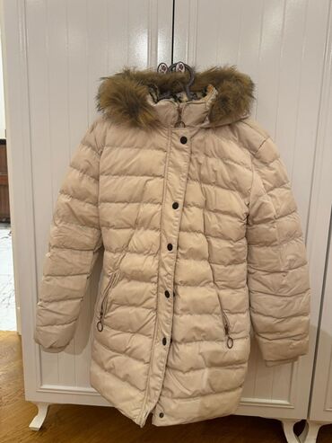 Qadın qış palto/kurtka - Rəng: krem (şokolad-qəhvəyi detal və astarlarla) - Uzun model, dizə yaxın - İstilik saxlayan dolğu, yüngül və rahat - Kapüşonlu - İkili fermuar sistemi (aşağıdan-yuxarıdan...