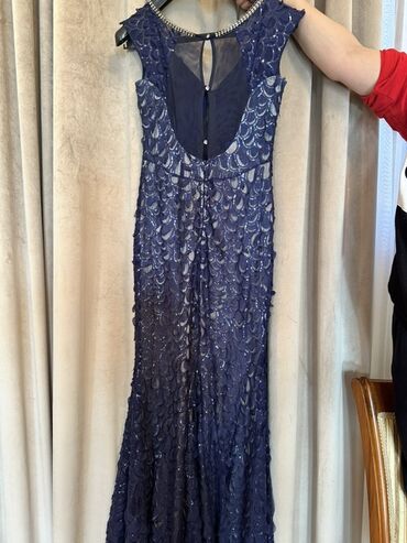 Qadın gecə/libas – tünd göy rəngdə, uzun, balıq kəsimli. - Parıltılı