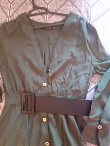Sisley firmasi. Zeytun-yaşıl rəngdə uzun qadın donu.