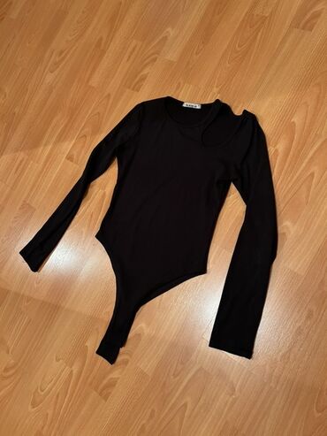 Qadın badi (bodysuit) – qara rəngdə, uzunqollu, atlas effekti verən parça. - Dərin büzməli V-dekolte, öndə qatlı drapelye - Gücləndirilmiş, yüngül şişkin çiyinlər - Alt hissə səliqəli badi kəsimi, ...