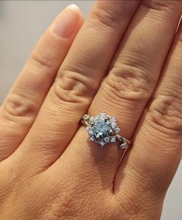 Gümüş rəngli zərif nişan üzüyü - Mərkəzdə iri, parlaq tək qaş (solitər) – dairəvi kəsim - Qaş altıbucaqlı (6 dişli) məngənə ilə möhkəmləndirilib - Haşiyələrdə xırda parlaq daşlarla bəzədilmiş...