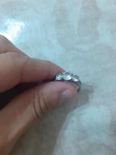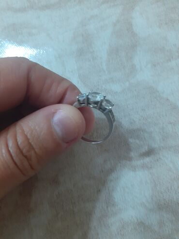 Gümüş rəngli üzük - Metal: gümüş tonlu (materialı vizual olaraq gümüş rəngindədir) - Dizayn: üst hissədə üç daş üçün nəzərdə tutulmuş klassik “three-stone” qəlib. Daş yuvaları prong (çərçivəli) bə...