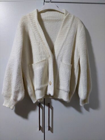 Ağ rəngli yumşaq fakturalı kardiqan - Model: V-yaxa, ön tərəfdən