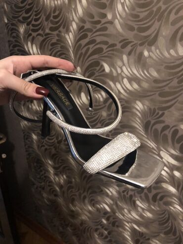 Məhsul: Qadın tufli - Rəng: Kobalt mavisi - Model: Açıq burnu, kvadrat uclu - Material: Parıltılı atlas toxumalı üst hissə, hamar bej altlıq - Bəzək: Barmaq hissəsində iri kristal daşlı parlaq qa...