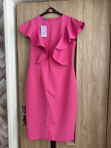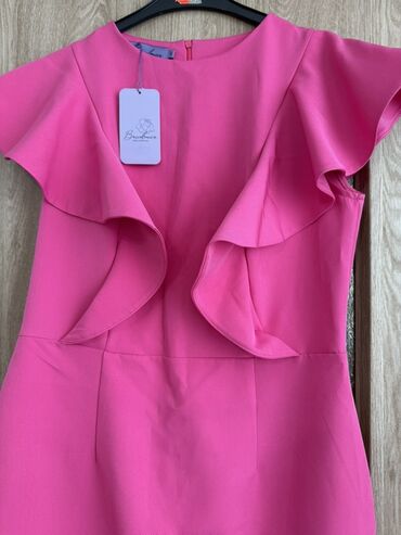 Brend: Miss Marina Model: Qısa kokteyl/gecə geyimi Rəng: Parlaq çəhrayı (fuşya) Ölçü: 36 (etiketdə göstərilib) Xüsusiyyətlər: - Qolsuz, bədənə oturan siluet - Ön hissədə asimmetrik drape/k...