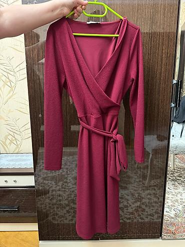 Qadın paltarı – “Simple Best” brendi - Rəng: tünd lacivərti, parıltılı (simli efektli) - Model: V-yaxalı, sarma kəsimli sinə hissəsi - Uzunluq: midi - Qol: uzunqol - Bel: kəmərli/quşaqla bağlanan ...