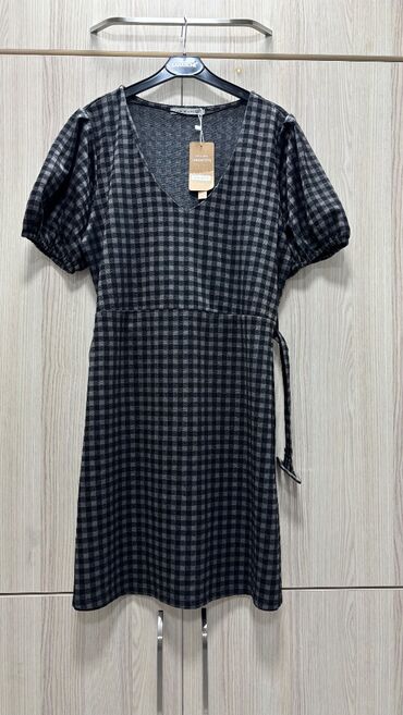 Gizia qadın paltarı - Brend: GIZIA - Ölçü: 36 (etiket üzərində) - Rəng: tünd /boz tonları - Model: dar siluetli, dizə qədər uzunluq - Yaxa: yumşaq, hündür/büzməli yaxa - Qol: uzunqol - Detallar: ö...