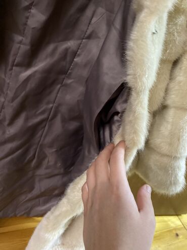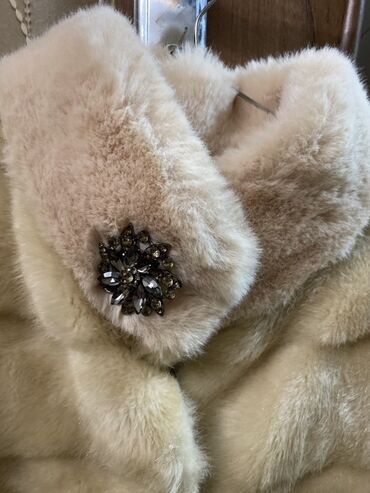 Aq rəng şuba – 50 razmer - Rəng: krem/ağ - Model: qısa şuba, klassik kəsim - Yaxası: iri, həcmli tüklü yaxa (şal-yaxa effekti) - Material: yumşaq, sıx tüklü süni/kaşmir tərzli kürk toxuması - Bağl...