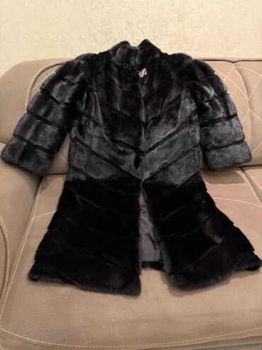 Ölçü etiketində məlumat görünmür; uyğunluğu şəkillərdəki kəsimə əsasən orta beden aralığına yaxındır. Şık və minimalist görünüşlü, qara rəngin hər kombinlə uyğunlaşdığı zərif xəz palto axtaranlar üçün.