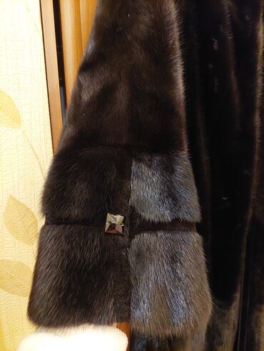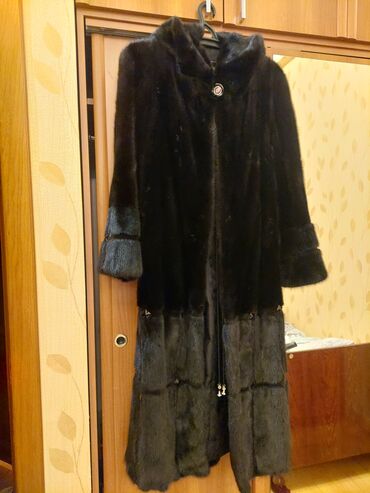 Uzun qadın kürkü - Material: təbii dəridən hazırlanmış klassik xəz (mina/mink tipli görünüş). - Rəng: tünd qəhvəyi (3-cü fotoda açıq qəhvəyi ton). - Uzunluq: tam uzun, ayağa qədər. - Dərzilik: enl...