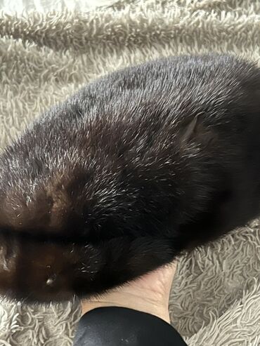 Tünd qəhvəyi rəngli təbii xəz papaq - Material: yumşaq, qısa tüklü