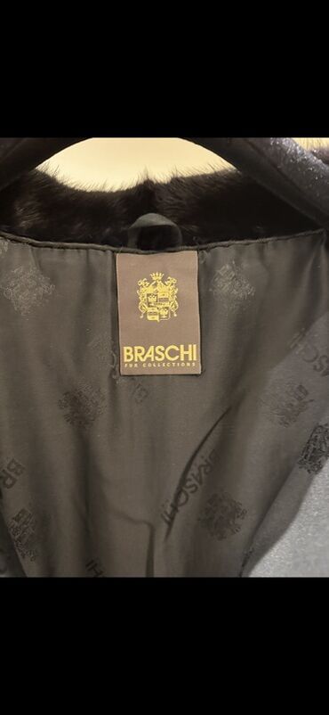 Braschi xəz palto - Brend: BRASCHI (etiket və daxili astarda logo) - Material: təbii xəz (minik/şinşilla görünüşlü, tünd qəhvəyi qara tonlarda, parlaq tekstura) - Kəsim: klassik düz siluet, enli ş...