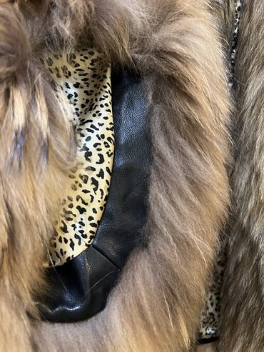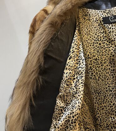 Zərif dizaynlı uzun xəz palto - Material: təbii mink (vizon) xəz - Rəng: açıq qəhvəyi-bej tonlarında, tünd qəhvəyi həcimli yaxalıq - Kəsim: uzun, düz siluet; enli üfüqi pannellərlə işlənmiş - Bağl...