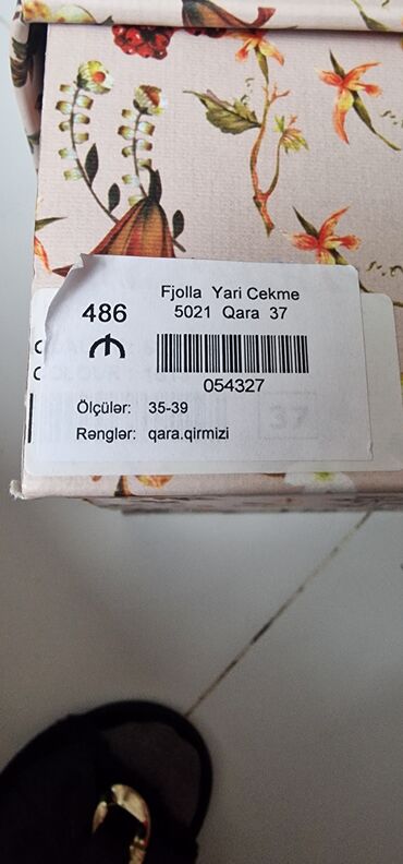 - Etiket məlumatı: Ölçü aralığı 35–39, rənglər qara/qırmızı (qutudakı etiket)