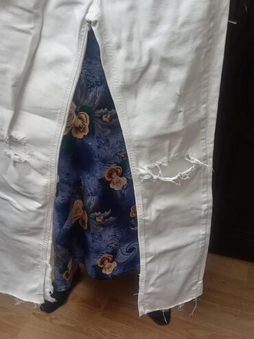 Stil axtaranlar üçün gündəlik və streetwear kombinlərinə uyğun, ağ rəngli yırtıq detallı ZARA cinsi.