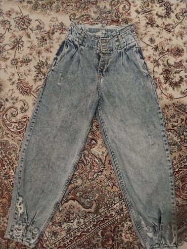 - Model: Yüksək belli, düz kəsimli “mom fit” cins şalvar - Rəng: Açıq