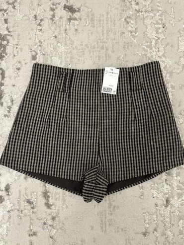 ZARA qadın şort - Model: qısa şort, A-kəsimə yaxın siluet - Parça: qalın teksturalı tweed - Rəng/naxış: qırmızı əsaslı qara-ağ kvadratlı (plaid) - Astarlı içlik - Ön tərəfdə düymə və gizli fermuar...