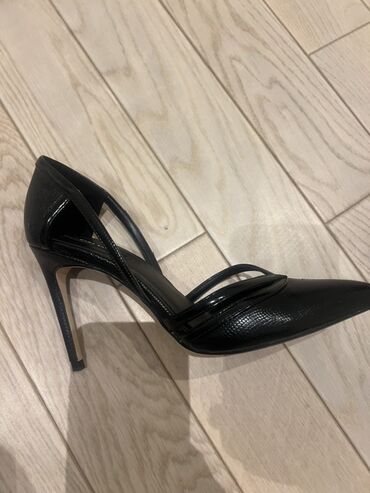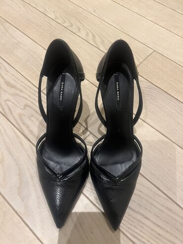 Qadın klassik tufli – qara rəng, Zara - Model: incə burunlu, balaca bantlı dekor (üst hissədə düyün formasında) - Daban: nazik “kitten heel” – təxmini 5–6 sm - Dizayn: minimalistik və zərif, ofis,...
