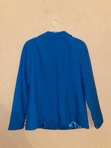 Parlaq elektrik-mavi rəngdə qadın blazer ceket. - Kəsim: klassik, tək