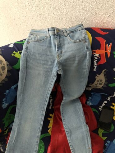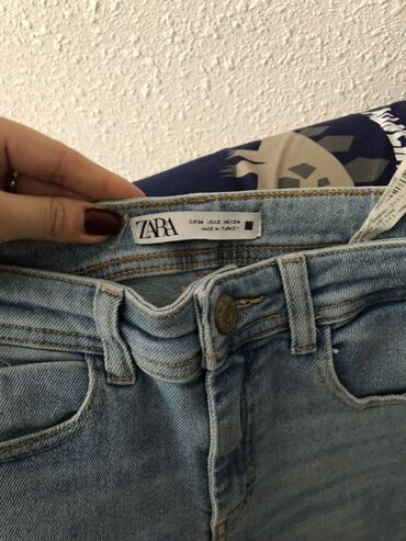 ZARA qadın cins şalvar - Model: klassik beş ciblə düz kəsim (straight) - Bel: yüksək bel - Rəng: açıq mavi “washed” denim - Bəylər: metal düymə və fermuar bağlanma, mis rəngli rivetlər - P...