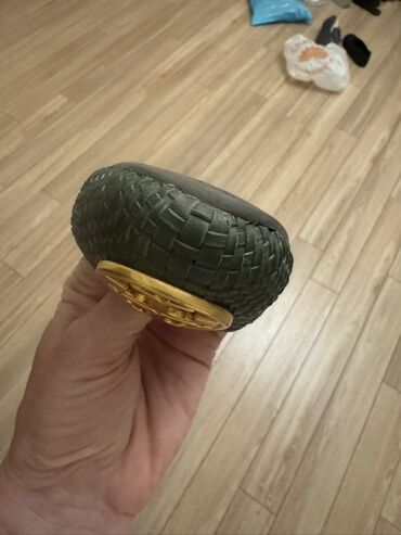 - Üstdə iri, qızılı tonlarda metal dairəvi emblem