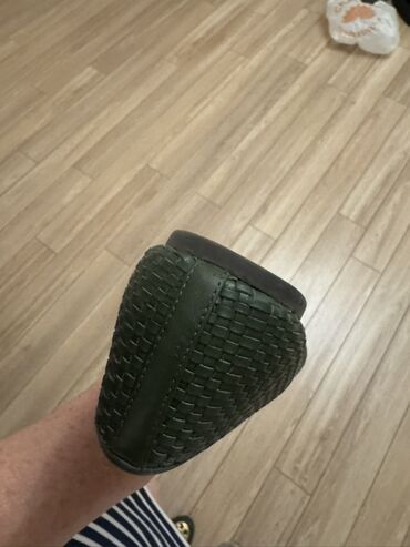 YaşılQadın baletkası – zeytun-yaşıl rəngdə, hörgü fakturalı dəri üstlük.