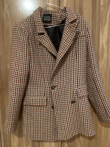 Digər brendCLEW qadın paltosu – xırda ziqzaqlı (houndstooth) naxışlı, payız-qış mövsümü üçün klassik model.