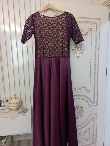 Bənövşəyi rəngli, zərif şifon gecə/libas paltarı. Off-shoulder (çiyin