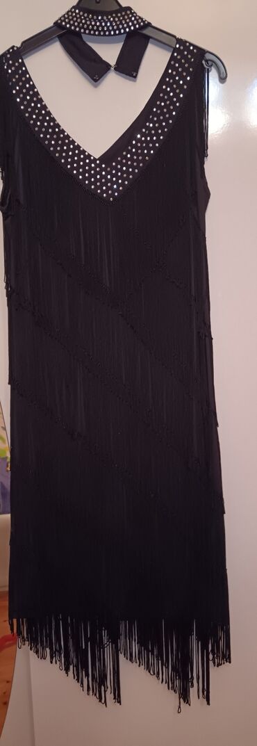Zərif ziyafət geyimləri – 2 model bir yerdə. 1) Qara-qızılı uzun don: - Üst hissə qızılı atlas fakturalı parça üzərində qara daşlı/payetli aplikasiyalarla işlənib - Qolssuz, yüngülcə beldən oturan...