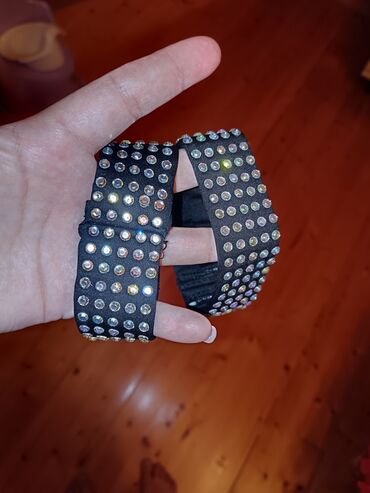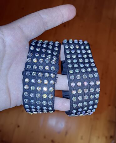 - Dəst: Parlaq daşılarla bəzədilmiş qara boyunluq və uyğun elastik biləkliklər.